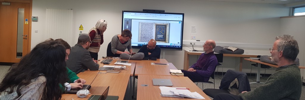 The day began with Adam Cohen, who is in Edinburgh as a Visiting Leverhume professor, giving an overview of the codicology of the psalter and in particular opening up the question of why a singleton page was introduced for Psalm 51, but not for similar decoration for Psalms 1 and 101. A recognisable feature of Insular psalters is the tendency to give decorative emphasis to Psalm 1, Psalm 51, and Psalm 101. The lively discussion which followed asked the question of whether the curiously painted page was a later addition, or if this single page was a quirk of the original codex. Looking at the construction of the book provided useful context for the creation of parchment books, and the process of their creation.
